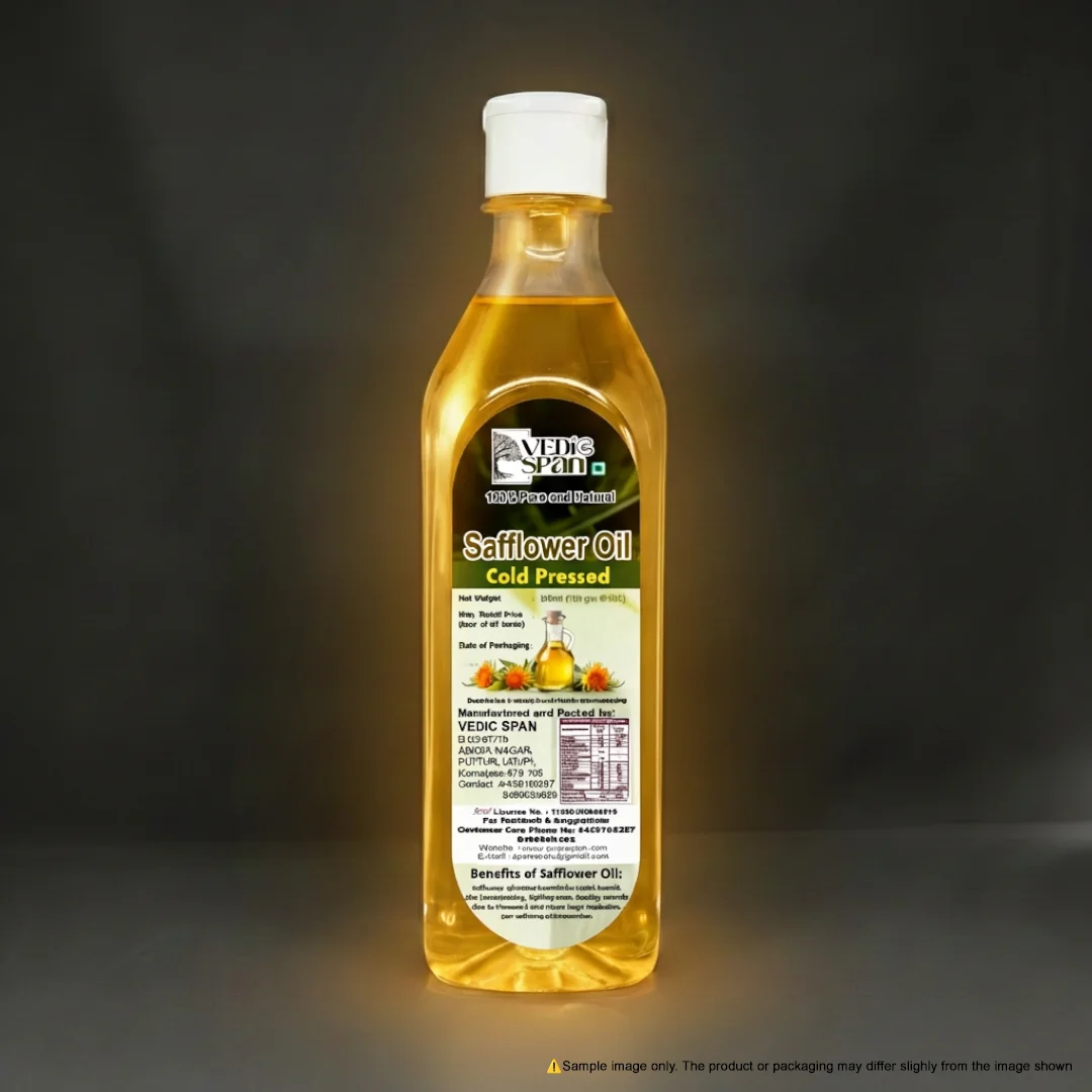 Discover the lightweight texture and potent health benefits of Vedic Span Cold Pressed Safflower Oil. Extracted gently using the cold-press method, our oil preserves its vital nutrients and natural golden hue. It is 100% Pure and Natural, making it an ideal choice for health-conscious cooking and natural skincare routines.