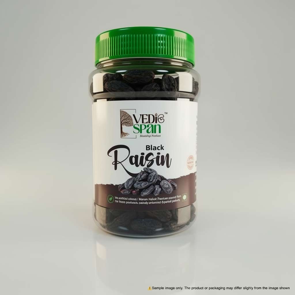 Vedic Span Premium Black Raisins (Kali Kishmish) | Jumbo, Seedless & Iron-Rich Superfruit